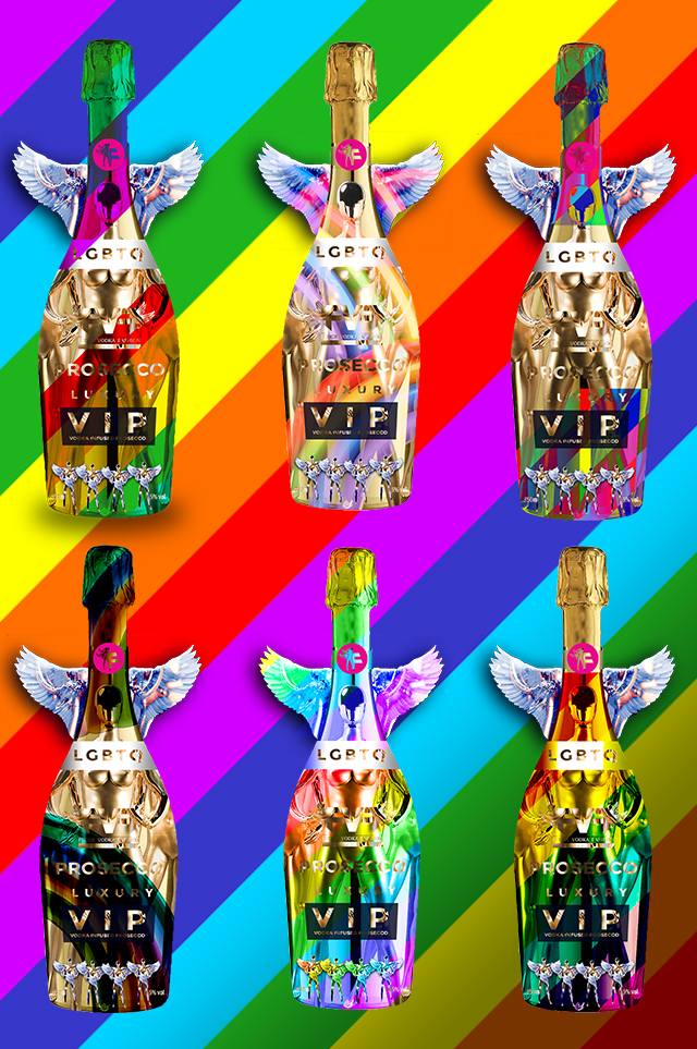 LGBTQ Prosecco — a radiant symbol of gorgeous knowing, a toast to the artists, celebrities, creators, innovators, and all the bold souls who shine with flamboyance, joy, and spirit.